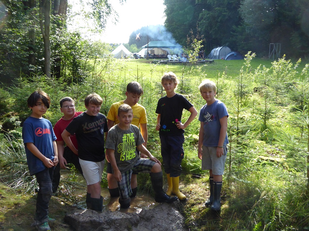 Natürlich durften auch Stationenspiele, toben auf der Wiese und Bachwasserduschen bei Sonnenschein nicht fehlen. Müde saßen dann alle abends am Lagerfeuer, genossen Stockbrot und Lieder bei Gitarrenklängen. Auch die schaurig-schöne Nachtwanderung am letzten Abend fehlte nicht, obwohl regnerisches Wetter das ein wenig in Frage stellte.